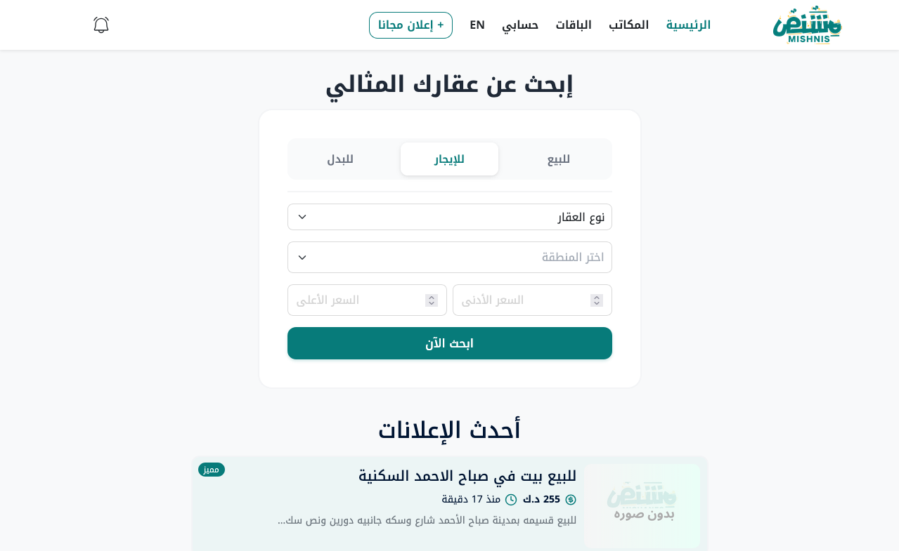 Looking for a property to rent or buy in Kuwait? Mishnis will provide you with a unique search experience.